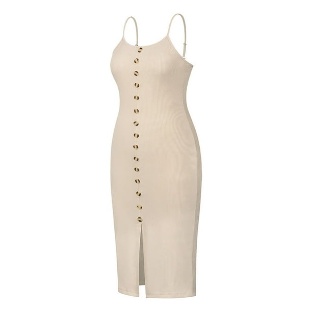 Button Down Sleeveless Dresses Bodycon Ribbed Midi Sundress Comfortable Elegant For Party Black Apricot Green Walmart Ca